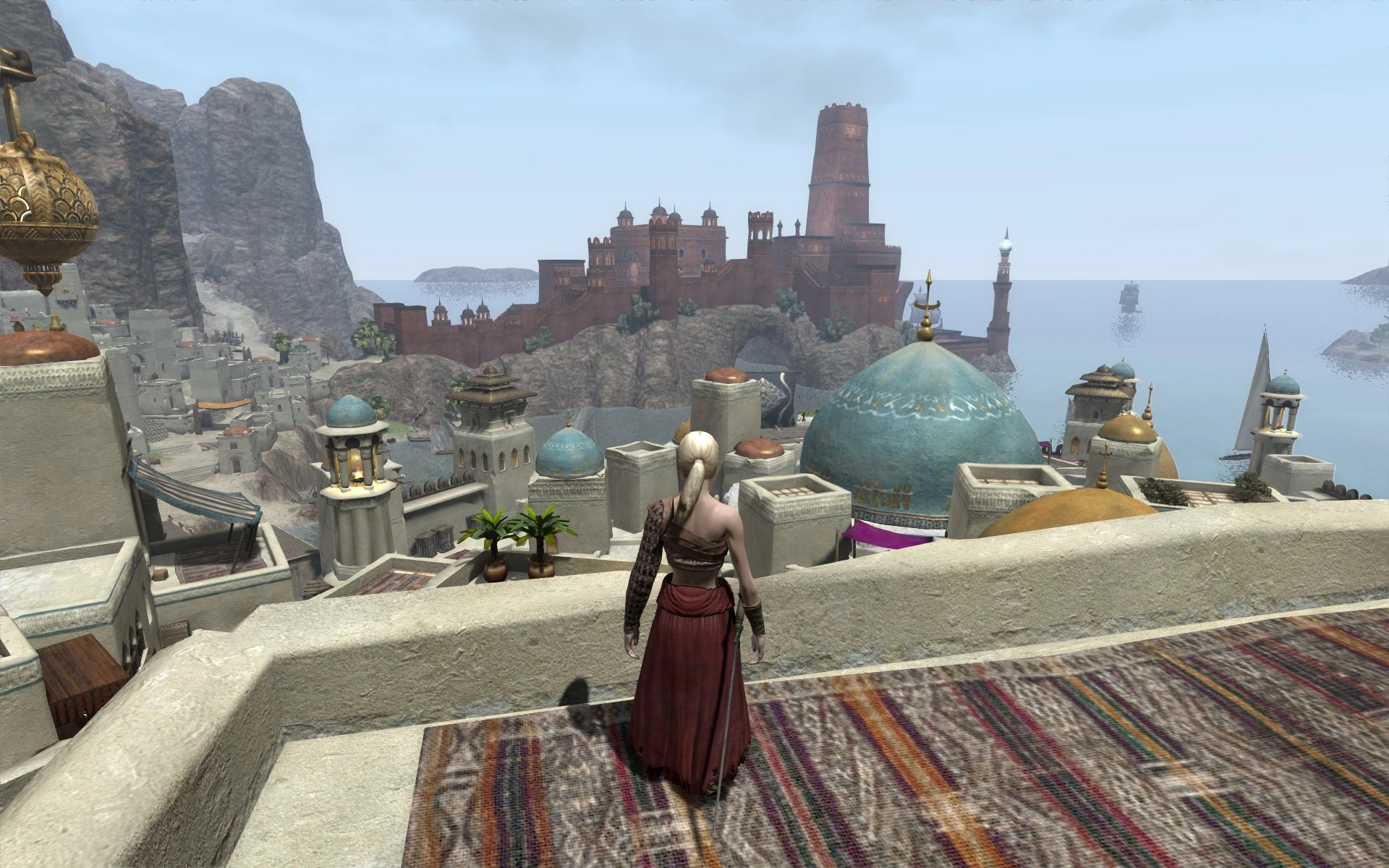 the bay that leads out into the Vilayet sea beyond. As with the rest of Ardashir, and Turan in general, the Persian influence is evident in the architecture and style of the fort and its environs. The ornate pillars, domes and walls of the castle create an imposing setting. This is clearly a fortress of a powerful military force"