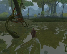 If one journeys further south, the marshlands turn thicker as the trees become denser, until a traveller stands near the edge of the Black Kingdoms and the lush jungle of those mysterious lands.