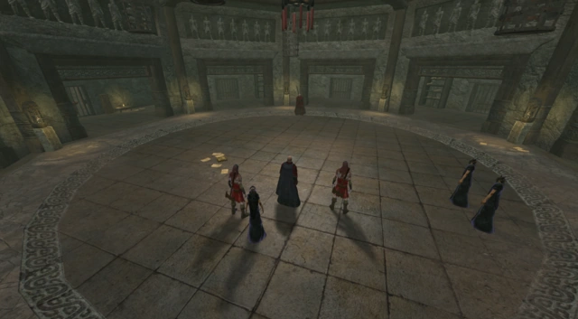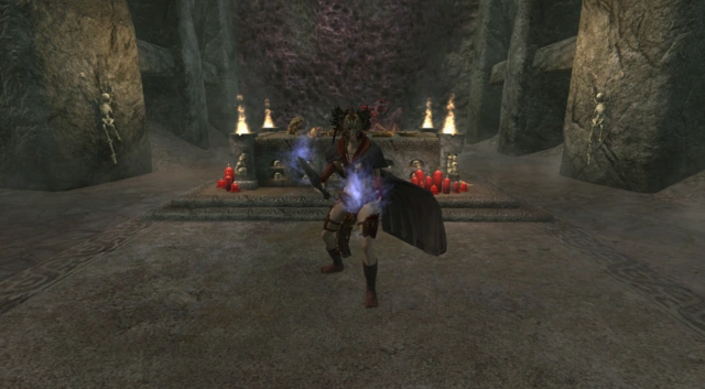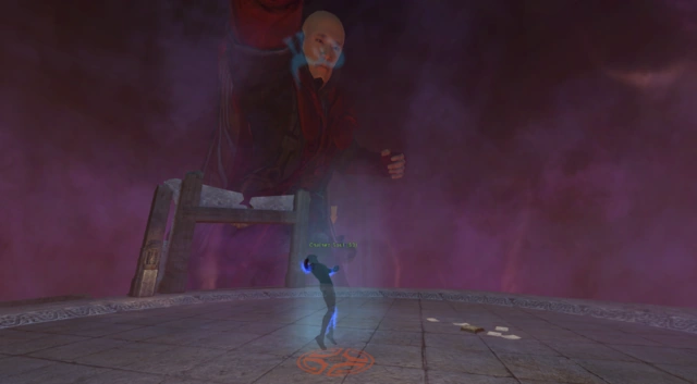 To avoid that, use double-tapping to get behind one of the pillars. Or, if a soldiers with protection gear, just use Cunning Defense, Stall the Advance, etc. Take cover until the spell was cast, than continue poking him until he's dead. (Note: If you find the going tough, melee characters can simply retreat to behind a pillar, up against the wall, out of line of sight. They can then wait, heal up, and go back in. Demonologists can go one better. They can also retreat to the safety of the pillars, then simply AoE him from safety. The boss cannot hit you, but you can hit him. He will still port you to the middle, but in either case he will never leave the middle spot).