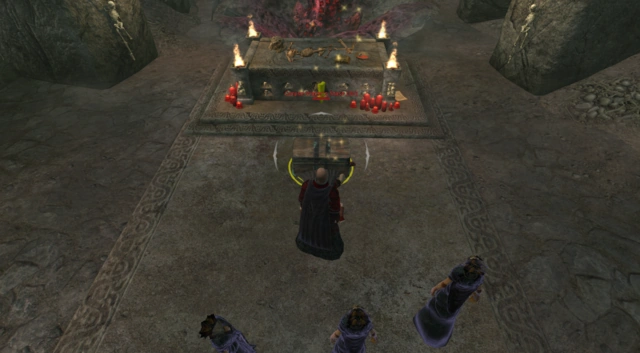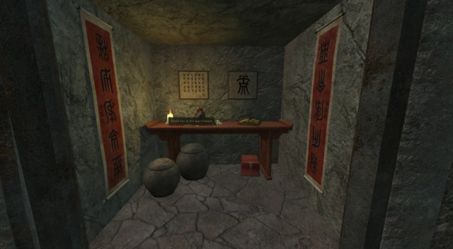 A door opens to reveal a small room. Click the book to collect the notes needed for the Last Legion / Scarlet Circle quest. Also, there is a mirror which teleports you back to the Ghost Village, a mask which gets you to Pra-Eun's Palace and a helmet to reach the Last Legion Camp in the center of Kara Korum.