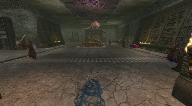 Fight your way through the library, keeping right. There are level 83 ranged mobs here and four stealthed Jiang Shi melee mobs. Be careful, as there are several mobs patrolling or standing behind corners. It safest to pull mobs back to the tunnel where you started and kill them there. Some Jiang-Shi will attack you from stealth. Kill them to complete this part and open the next door. (Note: The doors to the final boss will not open until the four hidden Jiang Shi are dead).