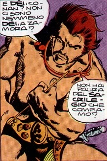 Climbing over to the inner garden, they noticed that lions guarded the inner garden. Taurus, being a much more experienced thief than Conan, came prepared for this. He blew some yellow-green powder created from black lotus, and the lions died silently. They proceeded to the tower, throwing a hook with a rope to the top of the tower to climb up. Suddenly they were attacked by a mute lion. Conan, acting just in time, managed to kill the lion.